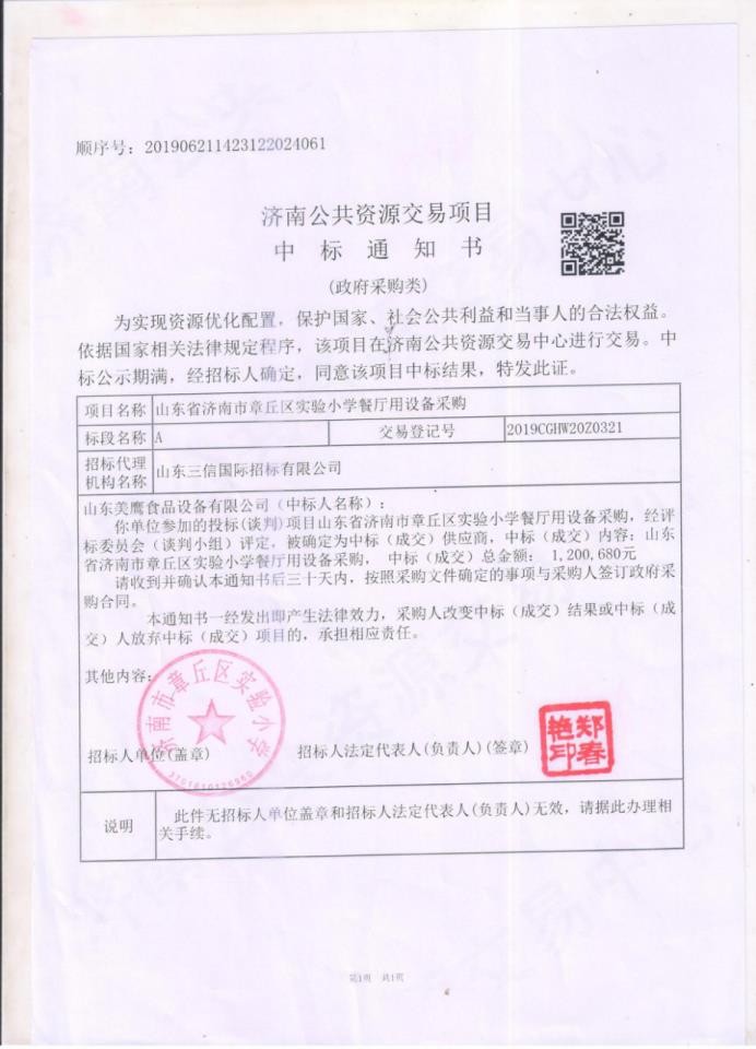 山東省濟(jì)南市章丘區(qū)實(shí)驗(yàn)小學(xué)餐廳用設(shè)備采購(gòu)